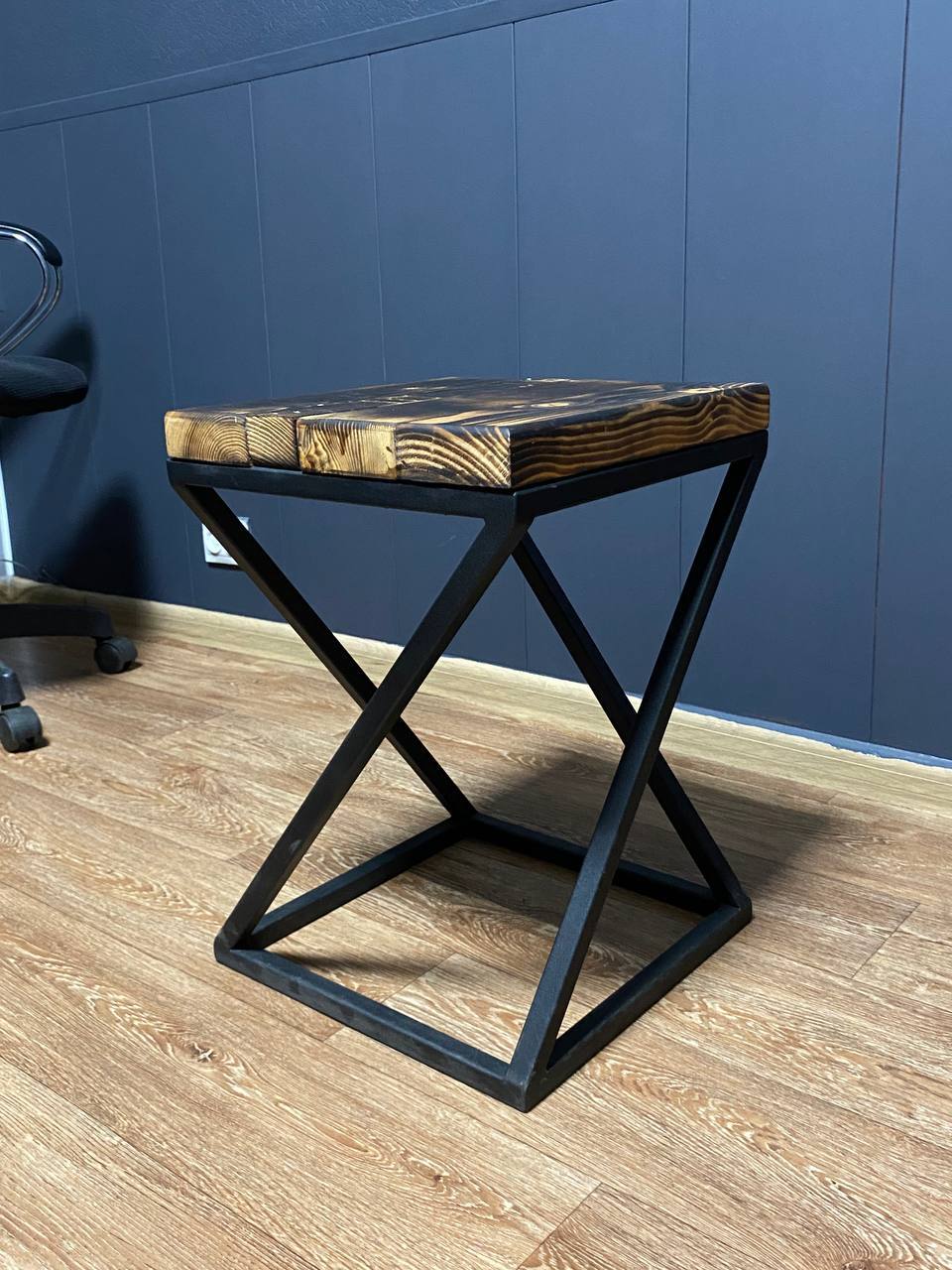 Благодаря уникальному дизайну табурет прекрасно впишется как в домашний интерьер, так и в офисное пространство. Натуральное дерево добавляет тепла и уюта, а металлический каркас — современности и устойчивости.